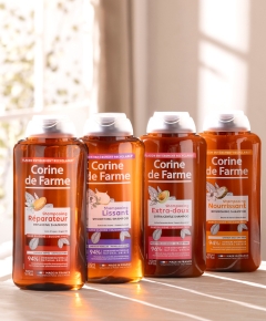 Corine de Farme propose une gamme de shampooing, soin et spray démêlant pour tout types de cheveux.